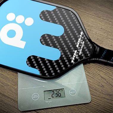 Our paddles are engineered to achieve an ideal weight range for a desirable balance between power and control. Averaging between 7.5 and 8.0 oz, our paddles can be customized to achieve ultra-lightweight control properties, or heavier weight power-focused properties.